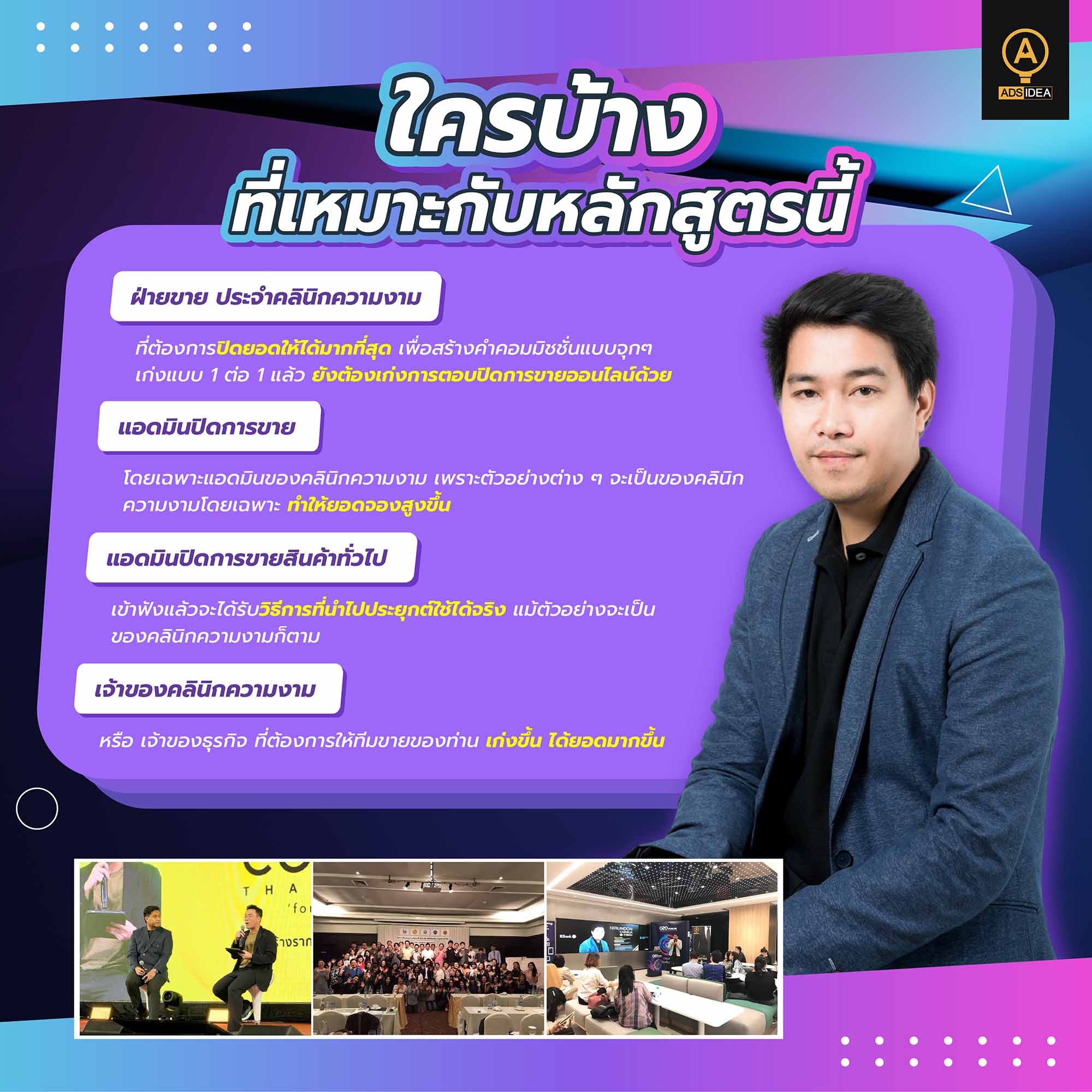 4. เจ้าของคลินิกความงาม หรือ เจ้าของธุรกิจ ที่ต้องการให้ทีมขายของท่าน เก่งขึ้น ได้ยอดมากขึ้น