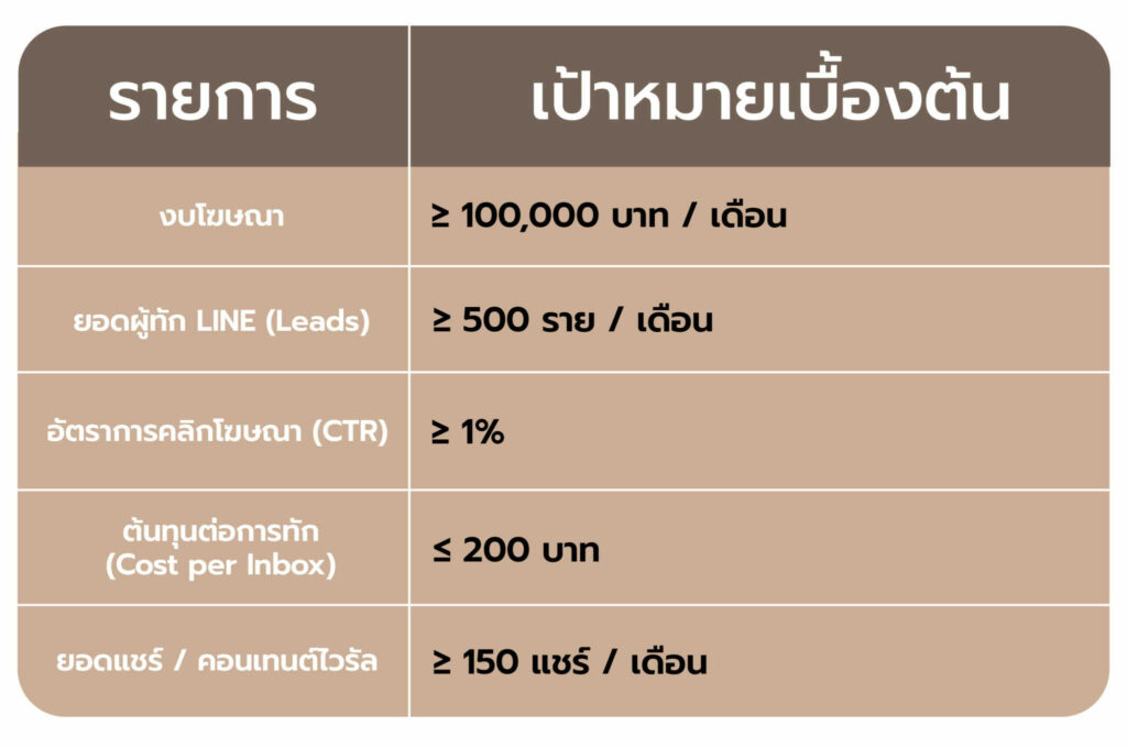 - กลุ่มเป้าหมาย: คนที่เคยมี Engagement / เข้าเว็บไซต์ / ทัก LINE แล้ว